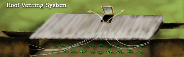 Működése: lezárjuk az üvegházunkat a tetőszerkezetünkkel, ezzel egy úgynevezett légszigetelést hozunk létre. Ennek köszönhetően ez csapdába ejti a nap melegét, ezzel megnöveli a walipini belső hőmérsékletét és a házban tartja azt.