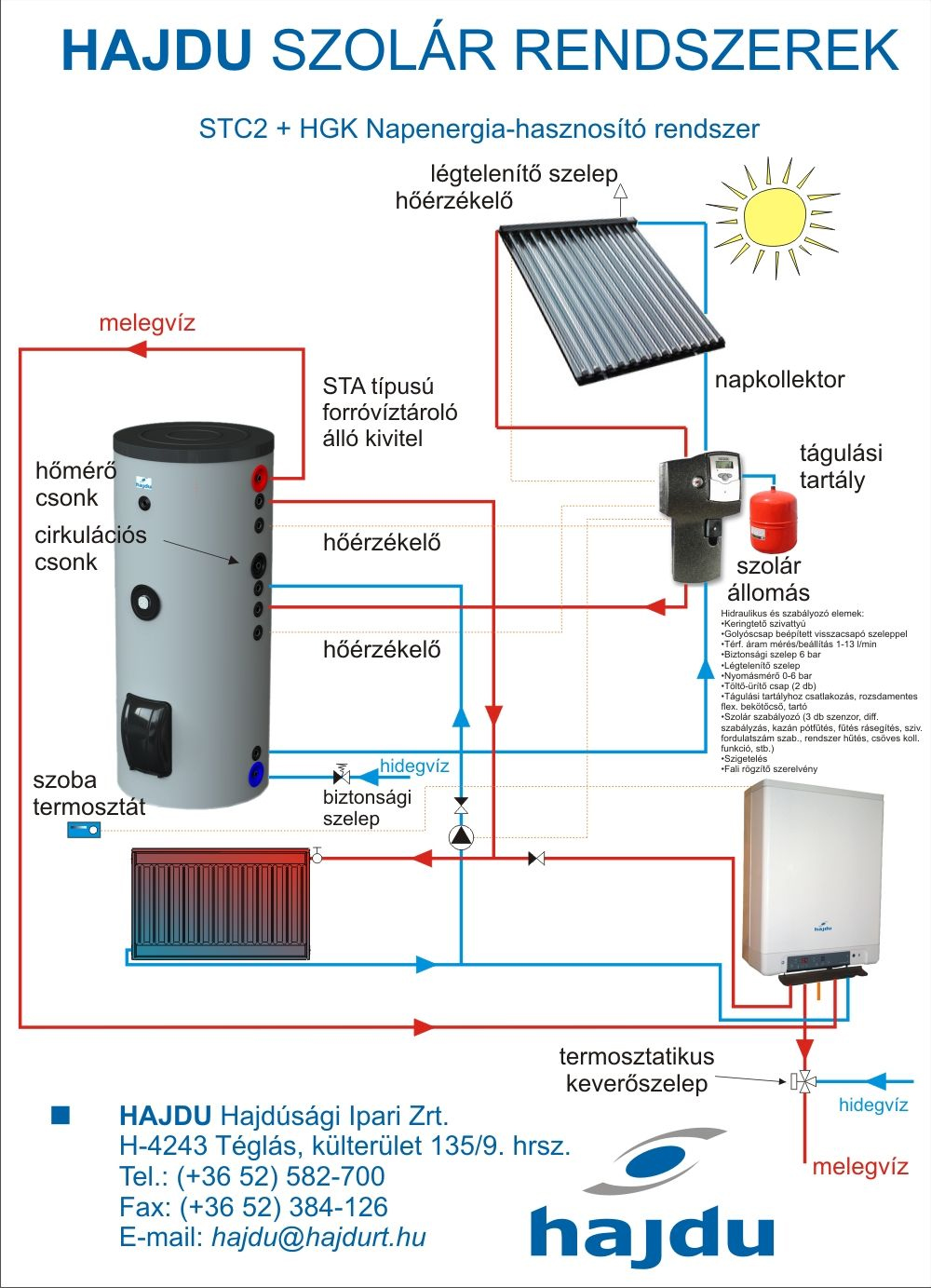 Az STC2 rendszer indirekt tárolójában két belső csőkígyó található. Az alsóra kell kötni a napkollektorokat, a felsőre pedig a kazánt. Így a kazán csak a tároló felső részét tudja felfűteni. Ezzel biztosítható, hogy mindig legyen melegvíz, ugyanakkor a kazán feleslegesen ne fűtse fel a teljes tároló térfogatot. Az STC rendszerben a szükséges pótfűtést elektromos fűtőtest biztosítja.