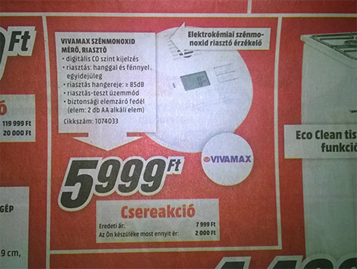 Kihagyhatatlan akció a Média Marktnál: Az egyik gagyi CO-vészjelzőt beszámítják a másikba!