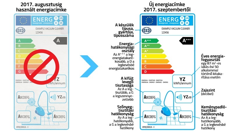 Változik az energiacímke is: eddig a legkisebb energiafogyasztású készülékek A jelölést kaptak, az energiaéhesebbek pedig maximum G-t. Mostantól a legtakarékosabb masinákat A+++ jelöléssel látják el, és megszűnik az E, F, G kategória.