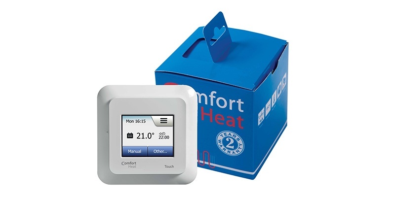 Fűtésről lévén szó a hőfokszabályzás is, tehát a vezérlés elhelyezése is fontos szempont. Jellemzően 65mm átmérőjű szerelvénydobozban, kapcsoló magasságban telepíthetők a termosztátok. Ezek jellemzően csak IP21 védelemmel rendelkeznek, tehát függőlegesen csöpögő víznek áll ellent a kialakításuk, egy elszabadult zuhanyrózsa, már az elviselhető mennyiséget meghaladó mennyiséget locsolná a készülékre, a vízgőzről nem is beszélve. Ezért a fürdőn kívülre, általában a világítás mellé célszerű elhelyezni a termosztátot is. A hőérzékelés NTC-vel történik, amit a gyártók 3m hosszú kiszerelésben a termosztát mellé csomagolnak. Ezt a fűtött felületre kell elvezetni a kábelek közé, így a 0,5°C pontosságú kapcsolás biztosítható a fürdőben úgy, hogy a termosztát a fürdőn kívül van szerelve.