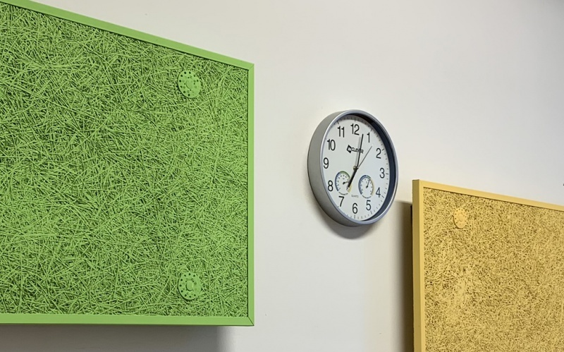 2018-ban ismét szükségessé vált egy másik terem „átalakítása” a hangok, rezgések kordában tartására. Ez meg is valósult a nyár folyamán. A lapok élképzése és színre fújása a telephelyen történt meg, a szerelés maradt hátra. A lapok hátoldalára 50 mm-es szálas üveggyapot került, kasírozással, ami tovább javította a hangelnyelést. Szárazépítésben használt válaszfalrendszer-profilra került rögzítésre és véletlenszerű elrendezésben felkerültek az oldalfalakra. A lapok megdöntésével még nagyobb hatásfokot lehetett volna elérni, de idő hiányában ez sajnos nem vált valóra. A befejezés után a terem kipróbálásra került és megfelelőnek bizonyult ez a fajta megoldás is.