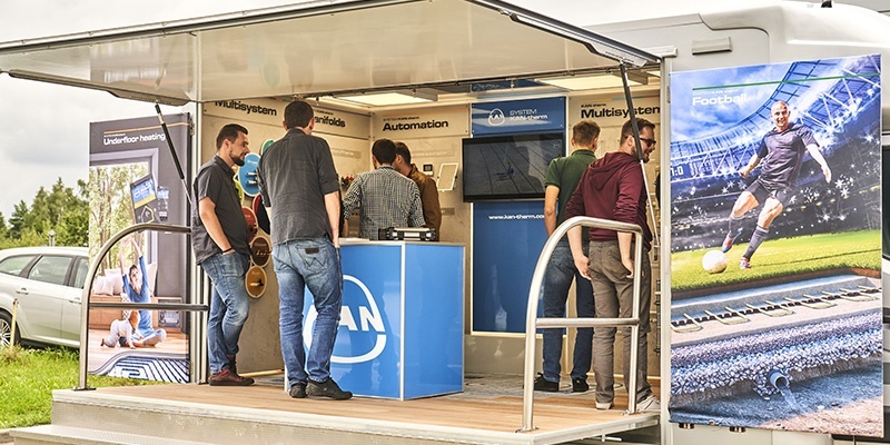A termékek iránti hatalmas érdeklődésnek köszönhetően a KAN-Therm kibővíti projektjeit, ezzel is növelve partnerei körét. Az új innováció a Mobil Képzési Központ, amely hamarosan egy különleges útra indul Európába – erre pedig egy e célra épített különleges jármű, vagyis a KAN Truck Training Center fog szolgálni. Itt műszaki szakértők osztják meg tudásukat és tapasztalataikat a látogatókkal, valamint bemutatják a Kan-Therm rendszereket.