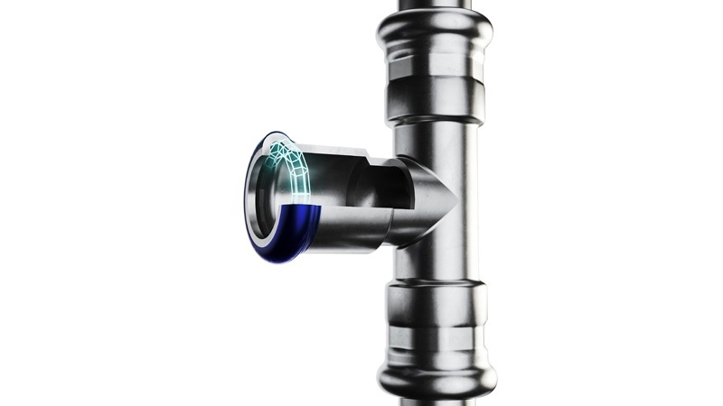 A másik jelentős dolog pedig, hogy a rendszer egyedi, sokszögű O-gyűrűje hatékony védelmet nyújt a szivárgás ellen: a gyűrű új fejlesztésű kialakítása garantálja, hogy a nem préselt csatlakozásokat az első nyomáspróba során megbízhatóan észleljük.