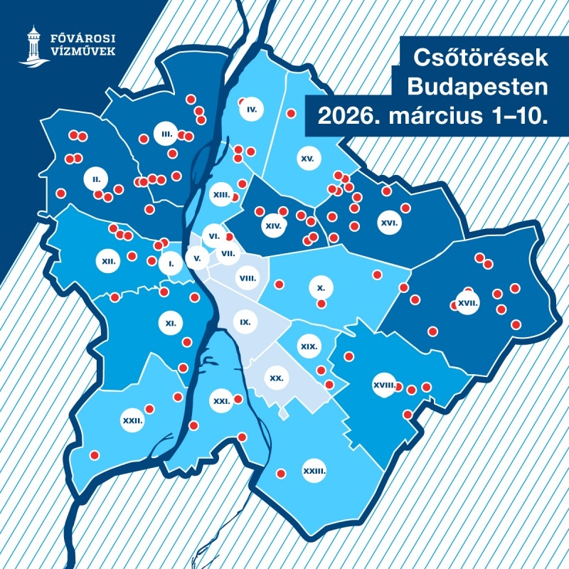 A csapadékos időjárás, a tartós fagyok és a Duna vízszintjének jelentős ingadozása egyaránt kedvezőtlenül hat a víziközmű-hálózat állapotára, ezért ilyen időszakokban gyakran megnő a csőtörések száma Budapesten – áll a Fővárosi Vízművek friss Facebook-bejegyzésében.