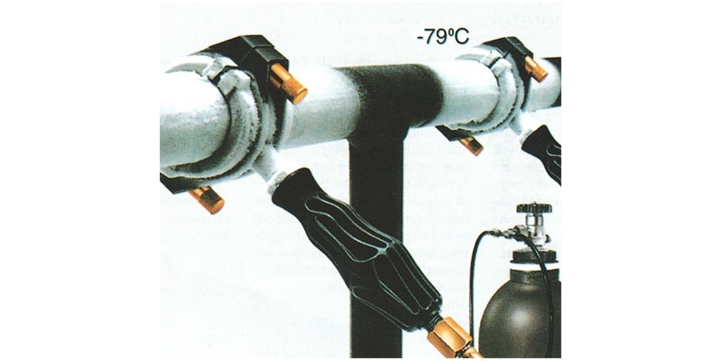 Egyes szerszámgyártók által kifejlesztett eljárások segítik az épületgépészeti csőhálózat-rendszerek víztelenítését, ill. leürítés nélküli szerelvény, ill. hőleadó cseréjét. Főleg nagyobb kiterjedésű rendszerekben okozhat problémát a leürítés, ahol pl. hiányzik vagy nem működik a főelzáró vagy a strangelzáró szerelvény. Nagy költséget jelenthet a víztelenítés olyan rendszerek javítása esetén is, amikor a fűtési rendszer hőigényét távhőszolgáltatás látja el, de szükséges lenne például egy radiátor cseréje. Ilyen és sok más esetben egyszerűbb és olcsóbb megoldás az elfogyasztás, amikor történetesen egy speciális szerkezetet ráillesztve a lezárandó csőszakaszra CO2 gáz segítségével (vagyis szárazjeget készítünk) kiszakaszoljuk azt. Az elfagyasztással jégdugót alakítunk ki a bontásra ítélt szakasz elején és végén, ami ideiglenes elzárót jelent a szerelés során, mely akár 200 bar nyomásnak is ellenáll. A tökéletes lezárás feltétele, hogy vízáramlás és fűtés ne legyen, tehát szivattyú ne üzemeljen. Fontos, hogy a CO2-t tartalmazó palack ne a szabványos, vendéglátóiparban használatos, hanem „merülőcsöves" legyen, mert csak így biztosítható a folyékony CO2 bilincsbe áramlása. Az ipari gázok forgalmazói ezen palackokat bérbe is adják.