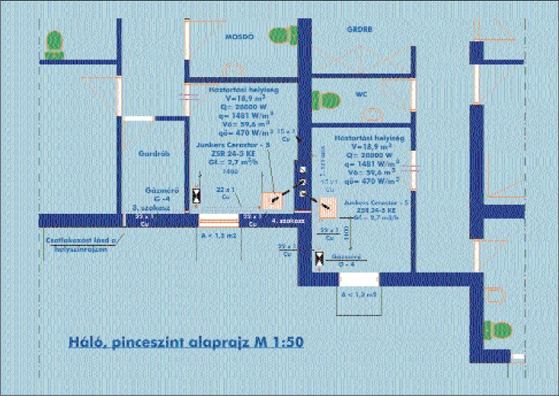 A 2001. októberi számunkban „Hogyan érveljünk” rovatunkban megjelent cikkünk a rézcsöves gázszerelés előnyeivel foglalkozott. Az írás egyik részében olvasható, hogy a méretezést az acélcsöves hálózathoz hasonlóan kell elvégezni és ezt a tervezőnek egyértelműen jelölnie kell a gázterven. Bár nem vagyunk kifejezetten tervezői lap és méretezési egyenleteket, számításokat nem szoktunk közölni, de most kivételt teszünk, mert úgy érezzük, hogy egy konkrét eset során elvégzett méretezés sok akadémiai vitától óv meg minket. Nézzék át a terveket és döntsék el, hogy egy „átlagos” családi ház vagy lakás esetén milyen átmérőjű rézcsöveket kellett beépíteni a gázvezeték-hálózatba.