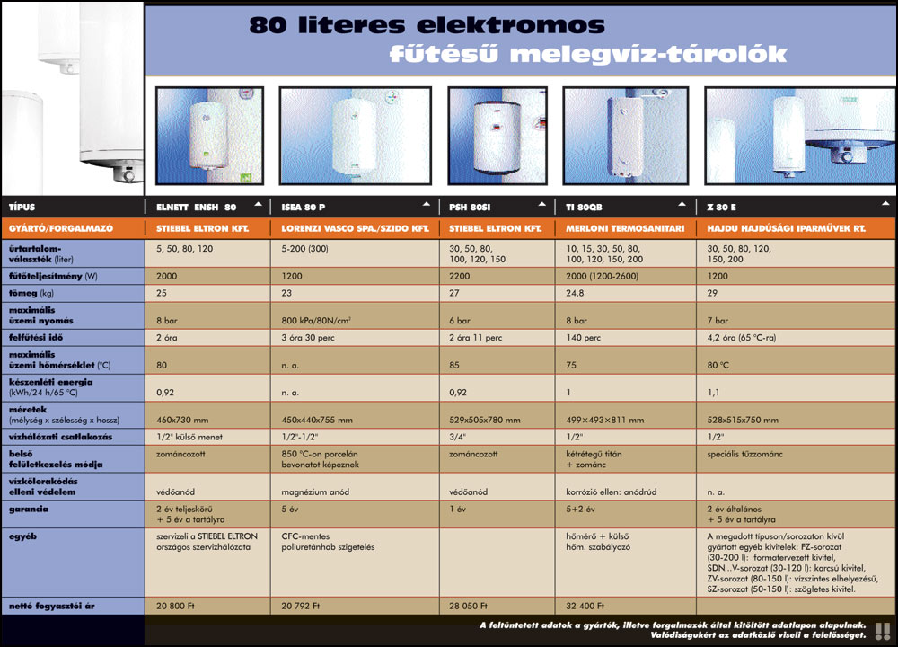 A 80 literes elektromos fűtésű melegvíz-tárolók
