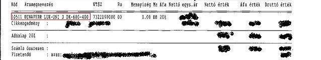 - a termék leírása (típus, azonosító, rendeltetés stb.)