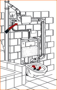 - Helyi szagelszívás: a tartály elhelyezésétől függetlenül az igazi komfortérzetet akkor érhetjük el, ha a kellemetlen szagokat a keletkezés helyén szívjuk el, egy nagy levegőszállítású és rendkívül csendes üzemű ventilátorral (5. ábra).