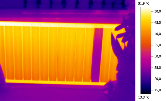 A radiátorok optimális hatásfokon történő működtetéséhez, típustól függően, biztosítani kell az ideális hőfoklépcsőket. Ehhez a megfelelő keringtetésen kívül az esetleges eltömődésektől is mentesíteni kell a rendszert. Egy hőképpel azonnal felismerhető az esetleges hiba oka, és könnyen kimutatható, hogy a hőleadó milyen eloszlásban adja le a hőenergiát.