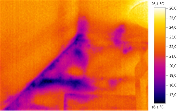 Az épület beltéri falain megjelenő nedvesedések okainak feltárása mindig nehéz feladat. Talán a legegyszerűbben felderíthetők a hőhidak menti nedvesedések, mivel ott a felület alacsony hőmérséklete és/vagy a környezeti levegő magas hőmérséklete és vagy páratartalma miatt a nedvesség kicsapódik. Sokkal nehezebb feltárni az épületen belül minden ok nélkül megjelenő nedvesedést, mivel a víz az épületszerkezeten belül a keletkezés helyétől elvándorolhat az épület különböző területeire. A talajból felszivárgó nedvesség, a rosszul szigetelt tetőn keresztül bejutó esővíz, esetleges csőtörés stb. is problémát okozhatnak, mivel a nedvesség hatására megjelenő penészgombák veszélyesek az egészségre. A termográfiával a szivárgás okai felderíthetők, és a penészesedésre hajlamos hőhidas felületek még a nedvesedés megjelenése előtt lokalizálhatók.