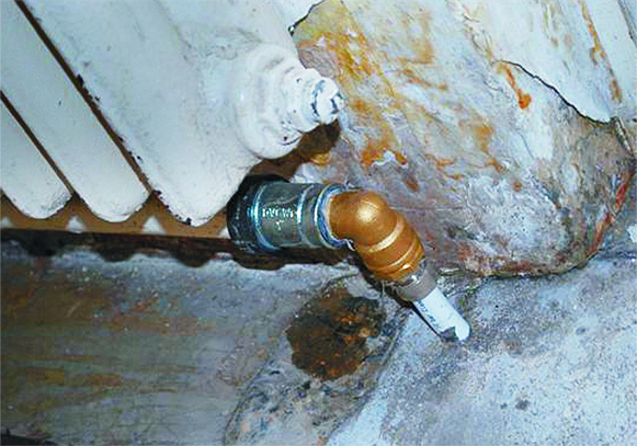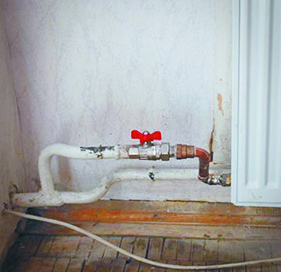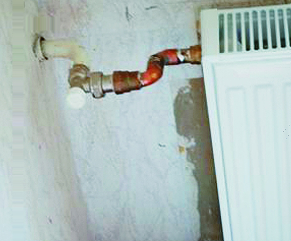 5-9. kép: A cserélt radiátornál az előremenő és visszatérő vezetékbe radiátortorló került beépítésre, de a kötések sem semmik.