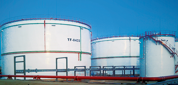 - A tartályok palástvédelmére minden nagy (9200 köbméter) tartályon két szint, a kisebb (650 köbméter) tartályokon egy-egy szint nyitott szórófejes sprinkler-rendszer lett telepítve.