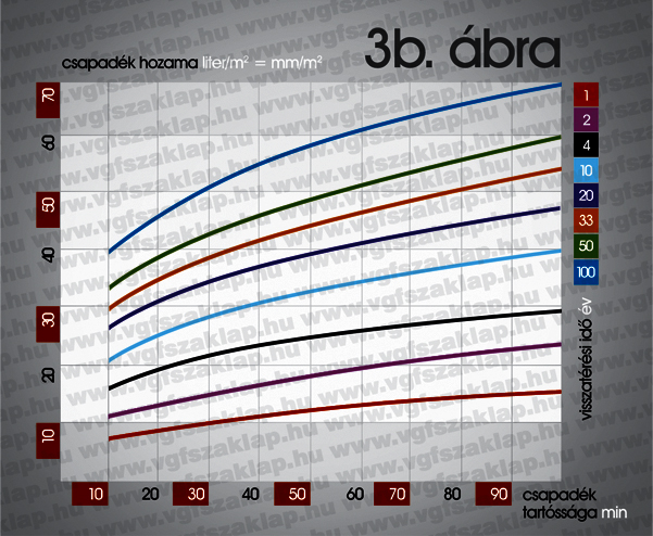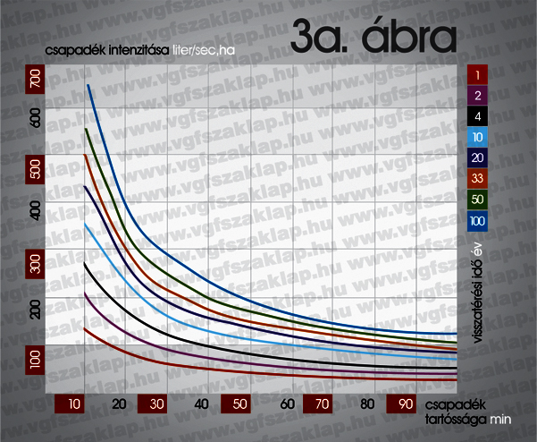 3. ábra Amíg valahol hivatalos állásfoglalás nem születik, a csapadékvíz elvezetésére használható az épület értékére, fontosságára támaszkodó, kockázatalapú méretezés, például a Montanari összefüggés alapján. Montanari képlet: i = a × t d -c i a csapadék intenzitása mm/h td a csapadék időtartama, 10 min időegységben a és c a helyi viszonyoktól függő konstans. |