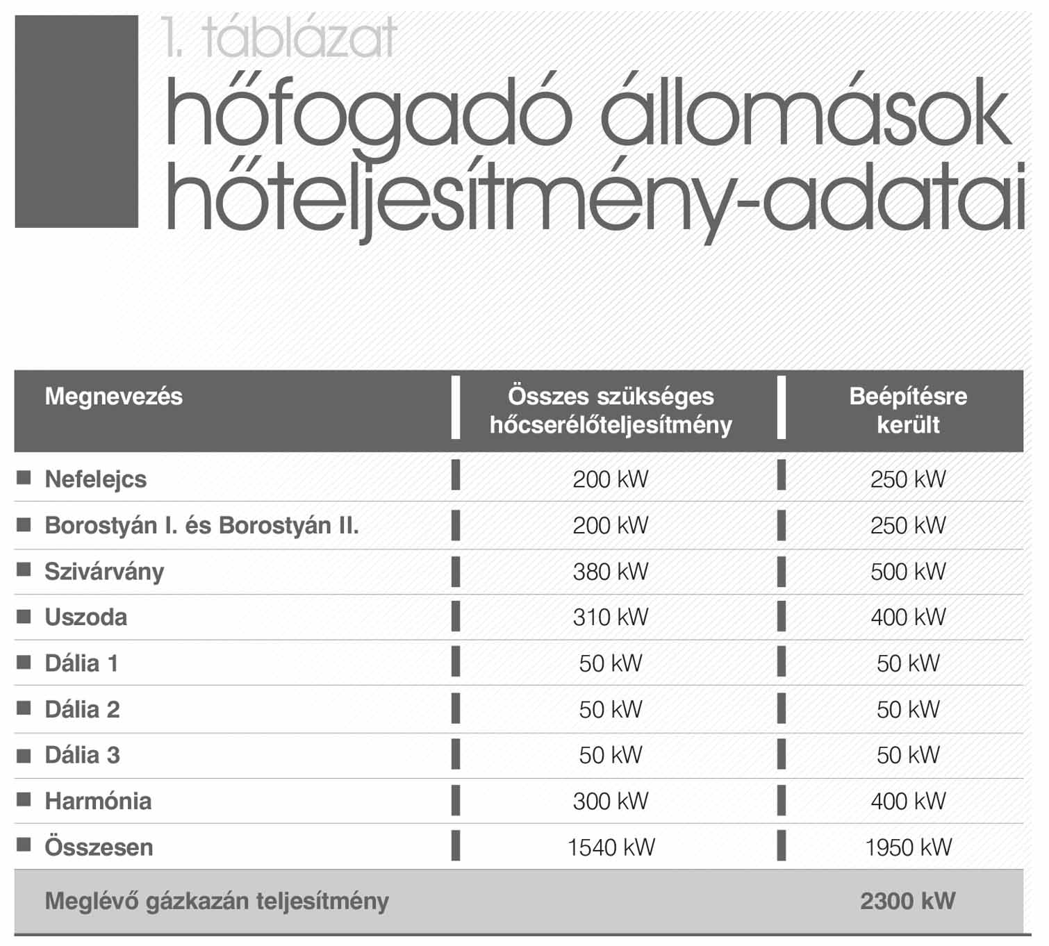 Fontos, hogy a hőátadó állomások és az irányítástechnika egy kézből jöjjenek. Minden épületben Aqotec hőátadó állomások kerültek telepítésre, melyeket folyamatosan vezérel a rendszer. A mellékelt képen a legnagyobb, 500 kW-os modul látható. Az optimális üzemelés érdekében a rendszer törekszik a legnagyobb ∆T elérésére a távhőhálózatban, mely jelenleg 90 ˚C előremenő mellett 60-65 ˚C-os visszatérő hőmérsékletet jelent. A szekunderoldal további szabályozásával akár 55 ˚C-os előremenő hőmérséklet is elérhető lenne, mellyel villamos energiát és aprítékot lehetne megspórolni.
