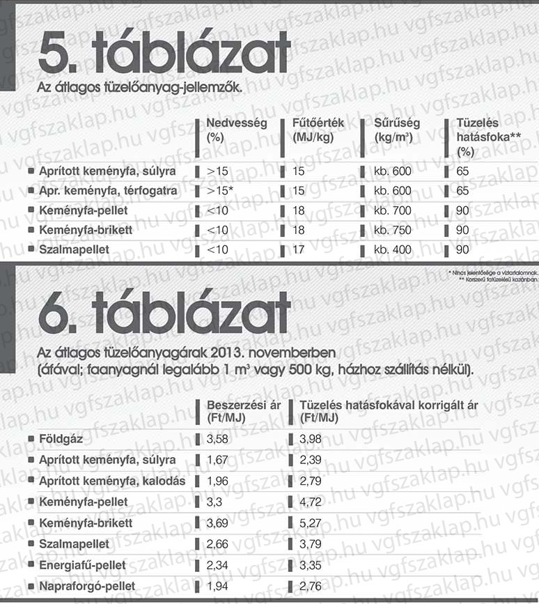 Az előző családi házban évente 2000 m³ földgázt (68 400 MJ) használnak fűtésre. A 2013. november 1-től érvényes lakossági földgáz-átlagár (I. árkategóriával 1200 m³, II. árkategóriával 800 m³ fogyasztást a gázszolgáltatók átlagárával számolva) mellett a fűtésre felhasznált földgázért egy évben kell fizetni 232 615 Ft gázdíjat és 12 497 Ft alapdíjat (áfával együtt). A gázért tehát 3,58 Ft/MJ árat kell fizetni. A földgáz ára hatósági ármaximum. Nem nagy sem a létesítési, sem az üzemelési költségkülönbség, mégis ösztönző a fatüzelés választására az új építésű családi háznál. Aprólékosabb számítást javaslunk a pellet- és a brikett-tüzelés létesítése előtt. Ismét hangsúlyozzuk, hogy a vizes tűzifa súlyra vásárlásakor ez az üzemeltetési árkülönbség szinte eltűnhet! Ne felejtsük el, hogy ezt a döntést (fatüzelés vagy földgáz) még a ház tervezése előtt kell meghozni, hogy lehessen helyet biztosítani a fatüzelésű kazánnak, a tüzelőtárolónak. Meglévő családi ház fűtési rendszerének átállítása mérlegelésénél talán a legfontosabb kérdés: van-e a kazánnak és a tüzelőnek helye? Meglévő fűtési rendszer fatüzelésre átállításánál általában tíz évnél hoszszabb megtérülési időre számíthatunk. Ez a tízéves megtérülés általában a banki hitelezés határköve is.
