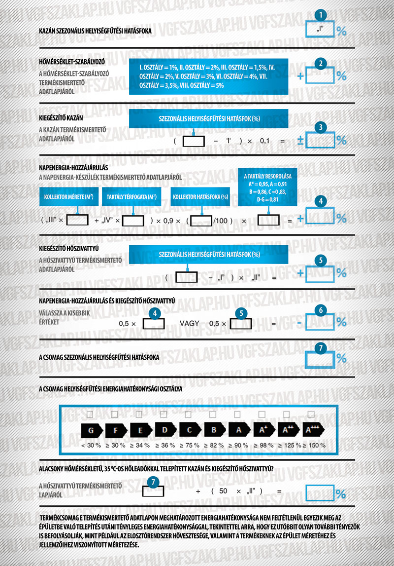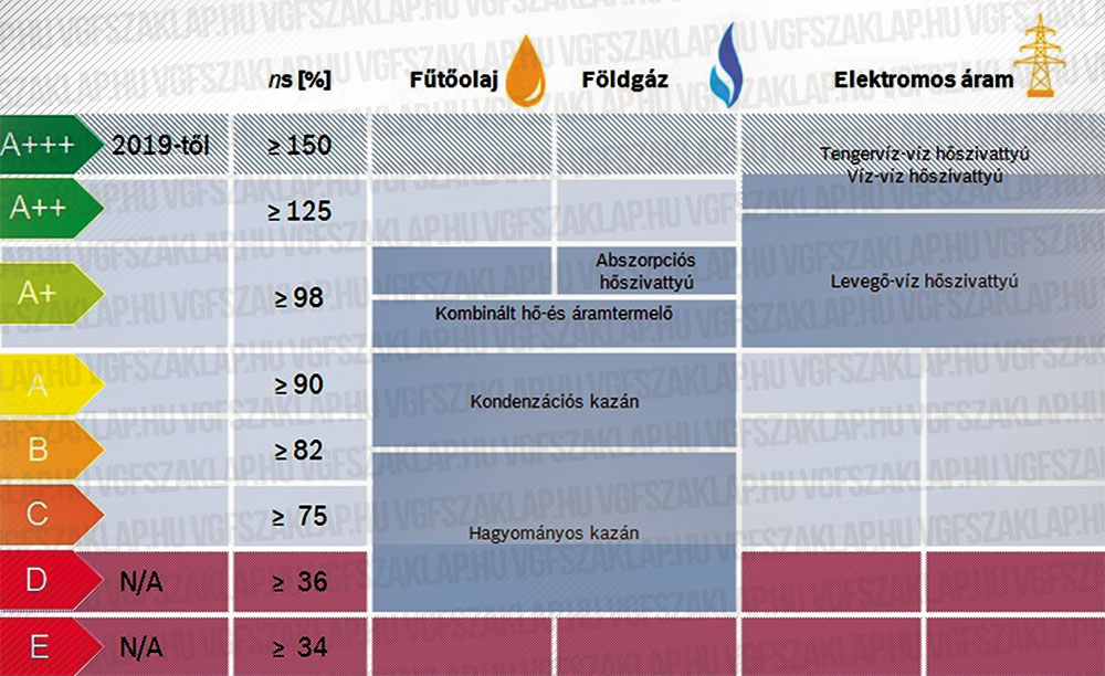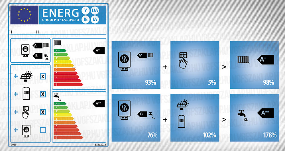 A különböző termékek fűtési és melegvíz készítési hatásfoka és energiahatékonysági besorolása