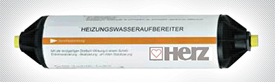 Eldobható patron tápvíz és pótvíz kezeléséhez. A HERZ patronban található ioncserélő gyantának és a pH-stabilizátornak köszönhetően a tápvizet/pótvizet sómentesítjük és meglúgosítjuk. A pH-értéket 8,2 és 8,7 között állítjuk be, a vízkeménységet 0,5 °dH, a vezetőképességét 100 µS/cm alá csökkentjük, ezzel teljesítve a legszigorúbb előírásokat is a lehető legegyszerűbb módszerrel. A patron kapacitása 5000 °dH × l.