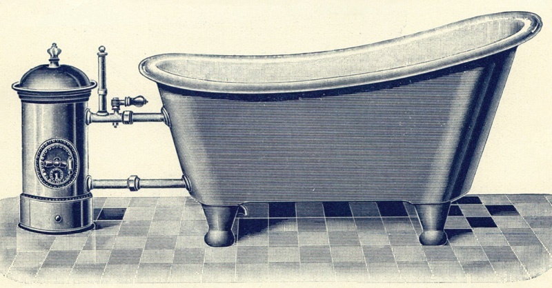 A XX. század elejére tehető a fürdőszoba, a fürdőkád újbóli elterjedése. A bádogosok egyik „csúcsterméke” volt ebben az időben a horganylemez fürdőkád. A komoly gondot az okozta, hogy a fürdővíz elég gyorsan kihűlt, ezért lehetetlen volt hosszabb ideig fürdőzni benne. Okos épületgépészek úgy oldották meg a víz melegen tartását, hogy egy „körülmelegítő” kályhát csatlakoztattak a fürdőkádhoz. Kevés fával befűtöttek, ami a gravitáció elvén működő, „automata vízmelegítőként” üzemelve kellemessé tette a vízben töltött időt.