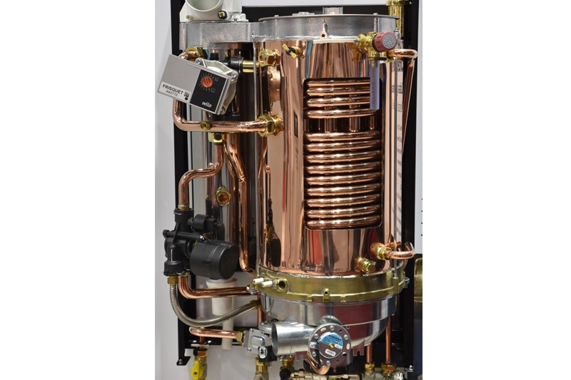 Ipari műalkotásnak is beillik egy impozáns rézcsőkígyós gázkészülék.
