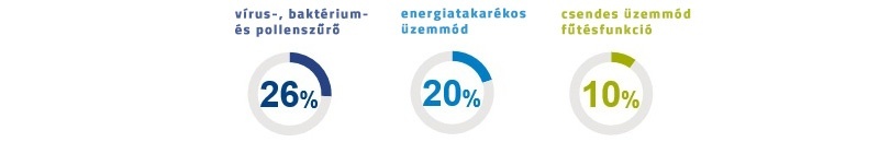 A hazai vásárlóknak kiemelten fontos szempont, hogy az egyes készülékek rendelkezzenek szűrőkkel (pollen, vírus vagy baktérium ellen). A szűrők mellett lényeges szempont még az energiatakarékos üzemmód funkció megléte, valamint a csendesség és fűtési üzemmód lehetősége is. A vásárlók erősödő tudatosságát jelzi még, hogy kiválasztási folyamat évről évre fontosabb szempontja az, hogy milyen energiafogyasztási kategóriába esik az adott készülék.