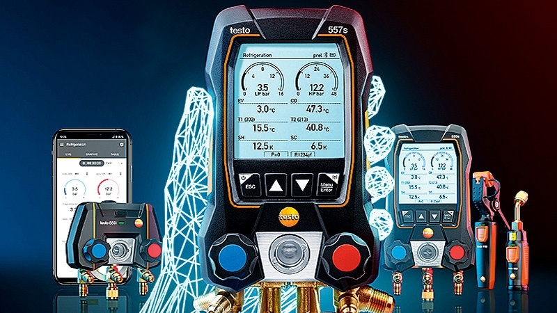 A hűtéstechnikában is nagyon fontos szempont a hatékonyság és megfelelő dokumentálhatóság. Az új testo 550s és testo 557s digitális szervizcsaptelepek nem csak új külsővel rendelkeznek, de innovatív digi-analóg kijelzéssel bírnak, így egyszerre látjuk a számmal kiírt értéket és az analóg órák számlapját idéző megjelenítést, ezáltal egyszerűsítve a leolvasást. Ezen felül az érzékelőket vezeték nélküli Bluetooth® technológiával csatlakoztathatjuk műszerünkhöz, legyen az csipeszes csőhőmérsékletmérő műszer, finom-vákuum mérő okos műszer vagy levegő hőmérséklet- és páramérő.