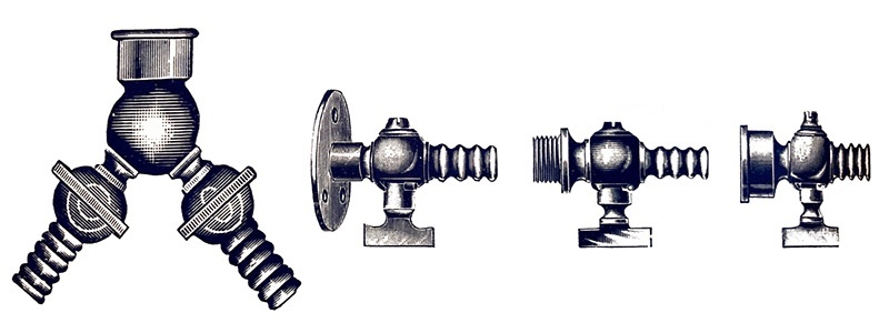 Gázcsuklók ábrázolása az Ulrich vasáru-nagykereskedés 1906-os katalógusából