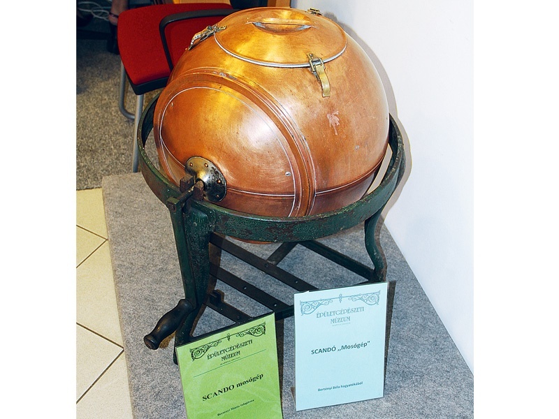 Na, de vissza a kiállításhoz, illetve annak legszebb darabjához, a mosógéphez, amely nagyon emlékeztet az egykori lottósorsolásokon használt sorsológömbre. Mária nagyon kíváncsi volt, vajon hogyan tetszik ez a szép berendezés a közönségnek. Szegedi lévén, rendszeresen látogatta a könyvtárt, majd megelégedéssel nyugtázta a sikert. A kiállítás zárása után odajött hozzám és azt mondta: „Úgy gondolom, ennek a szép tárgynak jobb helye lesz a Múzeumukban, mint nálam. Sokkal többen fogják megcsodálni.”