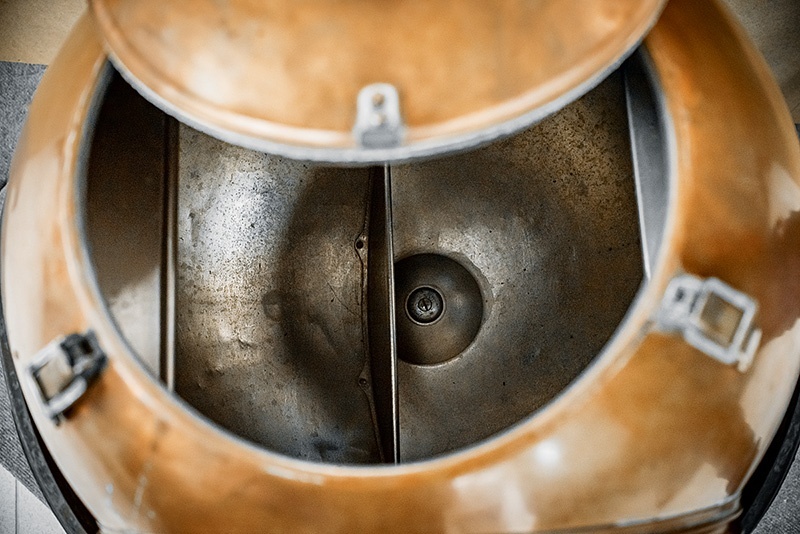A gömb belsejében a mai mosógépekhez hasonló ruhaforgató bordák találhatók