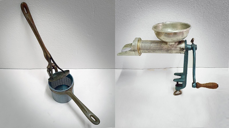 A krumplinyomó a ma használatosokkal ellentétben igen masszív és a „dugattyú” mellett nem jön vissza a krumpli vagy a gesztenyemassza. A paradicsompasszírozó ugyanúgy működött, mint a maiak, de még szép is volt. Ma már lényegesen kevesebben használják, mint régebben, mert sokkal egyszerűbb megvenni a konzervet, ami persze nem olyan jó, de kényelmes.