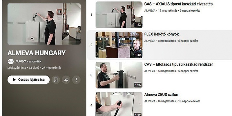 A cég a termékek állandó fejlesztése mellett a szerelési útmutatók egyszerűbb és felfoghatóbb formájának kidolgozására is állandóan törekszik. A szerelési útmutatók ezért készülnek videó formájában is. A különböző rendszerek összeszerelése, telepítése így még egyértelműbb, egyszerűbb és gyorsabb. A videók megtekinthetőek az Almeva honlapján és Youtube-felületén egyaránt.